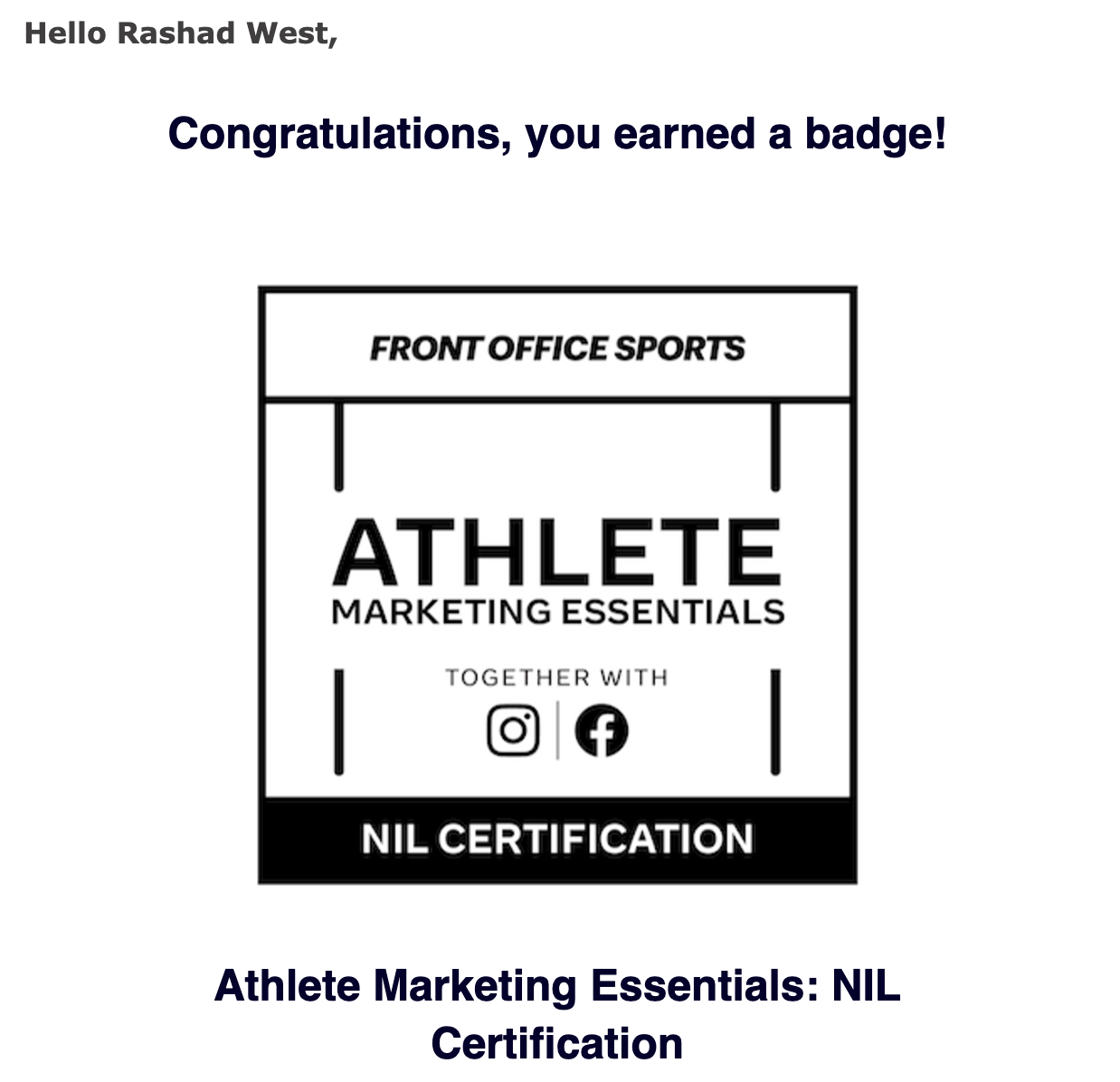 certificate in Atlete Marketing Essentials